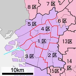 Before the introduction of parallel voting and single-member districts, the area had been part of the five-member Ōsaka 3rd district.
