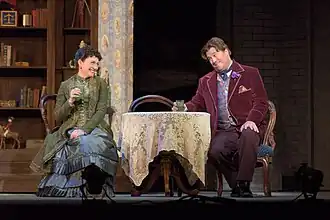 - [Revised version: After the conductor enters the pit, the opera begins with a "curtain speech" by Wilde at the opening night of his 1892 play Lady Windermere's Fan at the height of his fame.][2]