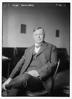 Oscar Ameringer (August 4, 1870 – November 5, 1943) was a German-American Socialist editor, author, and organizer from the late 1890s until his death in 1943. Ameringer made a name for himself in the Socialist Party of Oklahoma as the editor of its newspaper and a prominent organizer for the party.[1] His most famous work, The Life and Deeds of Uncle Sam, was a widely read satire of American history that sold over half a million copies and was translated into 15 languages.[2] His wit as a speaker and writer and his reputation as being one of the grand old men of left-wing politics in the United States led to him being described as the "Mark Twain of American Socialism".[3]