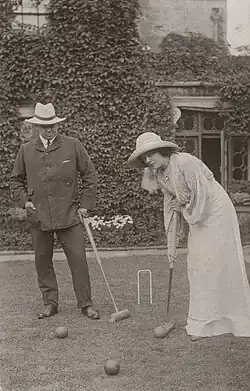 In 1916, Asche produced his play Chu Chin Chow, music by Frederic Norton, starring himself and his wife, which ran for 2,238 performances, from 31 August 1916 to 22 July 1921. The run easily broke the existing record of 1,466 performances, set by Charley's Aunt in the 1890s. The new record stood for decades.[15] The show drew some criticism for the ladies' scanty costumes, which Tree described as "more navel than millinery", but it was just what war-weary audiences wanted.[16] Asche played the part of Abu Hassan and confessed that "it got terribly boring going down those stairs night after night to go through the same old lines".[17] But Asche was a perfectionist, and the performance was never allowed to get slack. Chu Chin Chow also played in New York City in 1917 and Australia in 1920.[7] Asche collaborated in 1919 with Dornford Yates on a musical adaptation of Eastward Ho![18] Also during the run of Chu Chin Chow, Asche directed the hit London production of The Maid of the Mountains for Robert Evett and the George Edwardes Estate, which had an outstanding run of 1,352 performances.[15] As a director, Asche was an innovator in stage lighting and one of the first to use it as a dramatic factor in productions rather than as mere illumination. He was also known for his use of colour and his sensitivity about the dividing line between opulence and vulgarity.