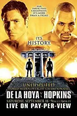 Oscar De La Hoya vs. Bernard Hopkins, billed as It's History, was a professional boxing match contested on September 18, 2004 for Hopkins' WBA (Undisputed), WBC, IBF, and The Ring middleweight championships, and Oscar De La Hoya's WBO middleweight championship.[1]