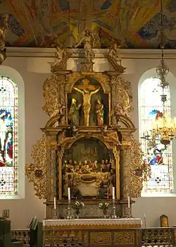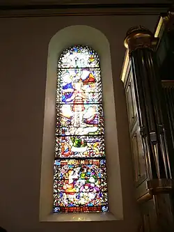 Artwork from recent times in the cathedral includes stained-glass windows in the choir by Emanuel Vigeland installed between 1910 and 1916, west portal bronze doors executed by Dagfin Werenskiold (1892–1977) in 1938, and the silver sculpture with communion scene by Italian sculptor Arrigo Minerbi dating from 1930. The ceiling decorations are by Norwegian painter Hugo Lous Mohr (1889–1970). In the latter half of the 1990s, the main organ built by Ryde & Berg of Fredrikstad, was mounted behind the old baroque facade.[3][4]