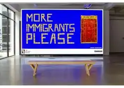 Osman Yousefzada (Pashto: عثمان یوسفزاده) is a British interdisciplinary artist, writer, and social activist. His first show was commissioned by Jerwood Arts in 2005 at the Wapping Project and was curated by Jules Wright. His art practice revolves around storytelling, merging auto-ethnography with fiction and ritual. He is a politically led artist, and is concerned with the representation and rupture of the migrational experience and makes reference in his work to socio-political issues of today.[1][2] His response to the hostile language towards Immigrants used by politicians such as Suella Braverman was a series of 5000 billboards across the UK in 2023, saying ‘More Immigrants Please’ welcoming them with an Eastern Rug collaged into the text artwork.[3][4]