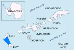 Osmar Strait (Bulgarian: проток Осмар, ‘Protok Osmar’ \'pro-tok os-'mar\) is the 14.6 nautical miles (27.0 km) wide strait in the South Shetland Islands, Antarctica between Smith Island to the northwest and Low Island to the southeast.