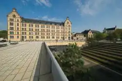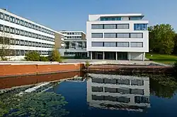 Since 1 January 2003, the Osnabrück University of Applied Sciences has been a foundation with legal capacity under public law.[2] The university has sites in the Osnabrück districts of Westerberg and Haste along with another site in Lingen in Emsland, which is due to be expanded under the terms of the Hochschulpakt 2020 (University Pact 2020) programme.[3] The lecture halls, seminar rooms and laboratories belonging to the schools of Engineering and Computer Science and Business Management and Social Sciences are located in Westerberg. The School of Agricultural Sciences and Landscape Architecture and its teaching buildings, laboratories and greenhouses are located in the Haste district, in the middle of a 5-hectare park on the verge of the Wiehen Hills, they are a hill range in North Rhine-Westphalia and Lower Saxony in Germany.