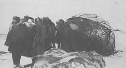 According to Yagoda's report to Stalin, OGPU officers confirmed the crash and reported its exact location at 23:40.[20] The bodies in the gondola were badly maimed; Fedoseenko's skull had disintegrated, probably after impacting a tempered glass porthole.[19] The balloon envelope fell 4 kilometres from the gondola and its fabric was quickly looted by local villagers.[19]