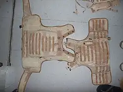 Improvements to the armour included the addition of a more robust right hand shoulder assembly and a non-slip shoulder pad for improved aiming of weapon systems. An Mk 3 A version was issued with studs on the plate pockets to better secure the hard armour plates and retaining straps over the side panels to reduce instances of the velcro opening when under stress.[12] This had been mitigated in earlier vests by the use of a bungee cord around the armour, hooked to the PALS webbing. The vest was mostly produced in Desert Disruptive Pattern Material camouflage, though versions in an experimental multi-terrain version of Disruptive Pattern Material developed during PECOC were also fielded[17] and limited production was undertaken of a version in regular Disruptive Pattern Material.[18]
