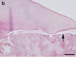 52. ^ LaPrade RF, Bursch LS, Olson EJ, Havlas V, Carlson CS (February 2008). "Histologic and immunohistochemical characteristics of failed articular cartilage resurfacing procedures for osteochondritis of the knee: a case series". The American Journal of Sports Medicine. 36 (2): 360–8. doi:10.1177/0363546507308359. PMID 18006675. S2CID 2360001.