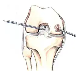 72. ^ Widuchowski W, Widuchowski J, Trzaska T (June 2007). "Articular cartilage defects: study of 25,124 knee arthroscopies". The Knee. 14 (3): 177–82. doi:10.1016/j.knee.2007.02.001. PMID 17428666.
