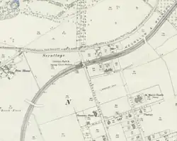 The station was opened by the District line's predecessor, the District Railway (DR), on 1 May 1883 on its line to Hounslow Town (located on Hounslow High Street, but now closed).[1] The station was on Thornbury Road east of the current Osterley station and served Osterley Park and a residential estate to the south named "Spring Grove".[2]