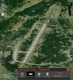 NASA's FIRMS imagery indicates that the 3,480 metres long runway has been constructed by hardening the overrun of a pre-existing 2,500 metres long runway, similarly to the Shaykovka air base.