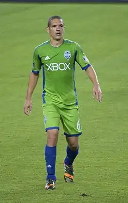 Osvaldo Alonso Moreno (born November 11, 1985) is a Cuban former professional footballer who played as a defensive midfielder. He defected from Cuba in 2007 and became a U.S. citizen in 2012. During his decade-long career with Seattle Sounders FC, Alonso played as a defensive midfielder who was known for his style of harassing, tackling and covering the field, while getting forward to supply enough offense to be considered a threat.[2] This style of play had earned the nickname "Honey Badger" from Seattle fans for his fearless, aggressive playing style.[3]
