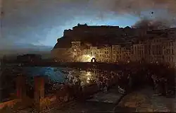 Oswald Achenbach (German: [ˈɔsvalt ˈʔaxn̩bax]; 2 February 1827 – 1 February 1905) was a German painter associated with the Düsseldorf school of painting. Though little known today, during his lifetime he was counted among the most important landscape painters of Europe. Through his teaching activities, he influenced the Kunstakademie Düsseldorf. His brother, Andreas Achenbach, who was twelve years older, was also among the most important German landscape painters of the 19th century. The two brothers were humorously called "the A and O of Landscapes" (a reference to their initials matching a common German reference to the Alpha and Omega).
