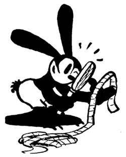 ![]() Oswald checking film reel, The Film Daily, 1928 | |
