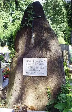 From 1922 to 1924 Foerster went to Russia as he attended Lenin after his stroke.[1] When his most famous patient died, he was asked to suggest a scientist who could examine Lenin’s brain after the autopsy. He recommended Oskar Vogt. As the most important of all the foreign consultants, his signature appeared on all the documents about the treatment and the death of Lenin.[2][5] Even if he has not cooperated with the National Socialists, his finances were restricted and his professional activities curtailed.[2] He was put under surveillance by the german authorities.[5] This was due to : his past connections to Lenin; the fact that his wife was partly Jewish;[6] and the 1932's Rockefeller Foundation grant,[2] urged by Foerster’s American friends, who funded the modern laboratory building of the Institute of Neurology. In 1934, the same year the building was built, he was deprived of his extraordinary professorship and in 1938 was relieved of the function of university professor.[2]