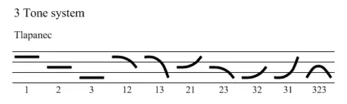 Many other systems have only three tone levels, such as Tlapanec and Texmelucan Zapotec.