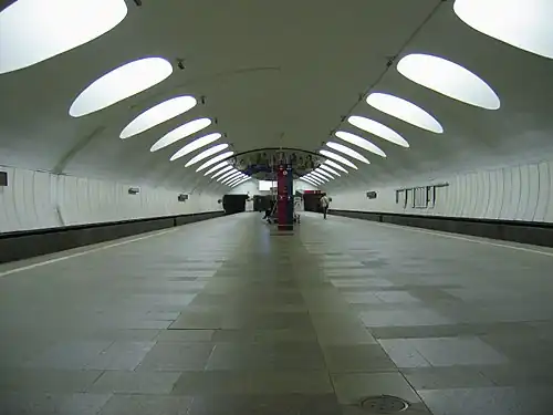 Otradnoye (Russian: Отрадное) is a station of the Serpukhovsko-Timiryazevskaya Line of the Moscow Metro. It was opened in 1991, being the last Metro station opened in Soviet Union, and built to a single-vault technology. The station contains several mosaic artworks.