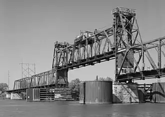 The Ottawa Rail Bridge is a railroad bridge spanning the Illinois River in the municipality of Ottawa, LaSalle County, Illinois. The first rail crossing on this site was constructed in 1871 by the Chicago, Burlington and Quincy Railroad, along a route leased from the Ottawa, Oswego and Fox River Valley Railroad between Ottawa and Streator, Illinois. The current bridge was constructed in 1898 by the King Bridge Company and altered in 1932 to include a vertical-lift span designed by Waddell & Harrington.[1] The Illinois Railway now operates trains over the bridge on its Ottawa Branch between Streator and Montgomery, Illinois.[2]