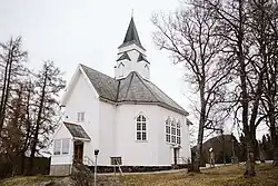 Otterøy Church (Norwegian: Otterøy kirke) is a parish church of the Church of Norway in Namsos Municipality in Trøndelag county, Norway. It is located in the village of Skomsvoll on the island of Otterøya. It is the church for the Otterøy parish which is part of the Namdal prosti (deanery) in the Diocese of Nidaros. The white, wooden church was built in an octagonal shape with a style reminiscent of the old stave churches. The building was constructed in 1858 using plans drawn up by the architect Christian Heinrich Grosch. The church seats about 350 people.[1][2][3]