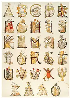 Adelborg quickly became known as a children's book illustrator, writing and illustrating over a dozen books between 1885 and 1920 and illustrating another dozen books for other authors. One of her best-known books was an alphabet of flowers, Prinsarnes blomsteralfabet (The Princes' Flower Alphabet, 1892), which was strongly influenced by the work of Walter Crane.[2] The title referred to the fact that at the time there were three young princes in the Swedish royal household.[2]