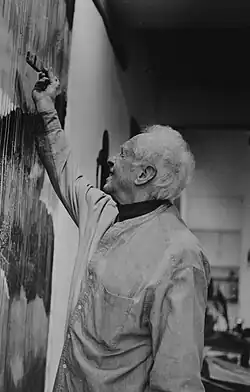 Otto Fried saw himself primarily as a painter; however, his extensive oeuvre consists not only of paintings and drawings but also of sculptures and objects of everyday use.[1] From his early landscape themes, still lifes, and portraits he developed an abstract formal and pictorial language in which circular movements and forms became dominant.[2] Works by Otto Fried are to be found in numerous private and public collections, including the Musée nationale d'art moderne, Centre Georges-Pompidou in Paris, the Metropolitan Museum of Art, and the Museum of Modern Art in New York.[3]