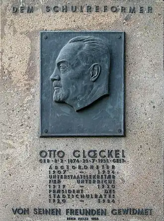 Otto Glöckel (8 February 1874 in Pottendorf, Lower Austria – 23 July 1935 in Vienna) social-democratic politician and school-reformer during the First Austrian Republic. First Minister of Education during the First Austrian Republic from April 1919 to October 1920.[1]
