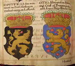 Otto I (in French, Otton I, between 1167 and 1171 – 13 January 1200) was Count of Burgundy from 1190 to his death and briefly Count of Luxembourg from 1196 to 1197. He was the fourth son of Frederick I, Holy Roman Emperor, by his second wife Beatrice I, Countess of Burgundy,[1] daughter of Count Renaud III.[2]