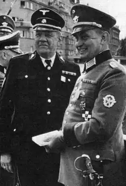 ![]() Steinhäusl (left) with Oberst der Schutzpolizei Carl Retzlaff in 1939. Retzlaff was commander of the Schutzpolizei in Vienna. | |