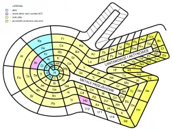 One of the Benfey's publications in Chemistry was a model of an extended periodic table, sometimes referred to as the periodic snail. First published in 1964, it explicitly showed the location of lanthanides and actinides. The elements form a two-dimensional spiral, starting from hydrogen, and folding their way around two peninsulars, the transition metals, and lanthanides and actinides. A superactinide island is already slotted in.[10]