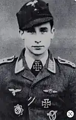 - Knight's Cross of the Iron Cross on 4 May 1944 as Oberfeldwebel and pilot in the 9./Jagdgeschwader 51 "Mölders"[18][Note 4]