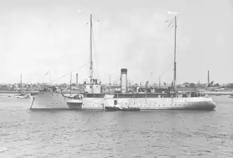 As built, the ship carried three 76 mm Cruesot rapid-fire cannons and 100 rounds, two 47 mm Cruesot rapid-fire cannons with 1,200 rounds of ammunition as well as two 7.6 mm Hotchkiss machine guns with 31,700 rounds of ammunition. Two of the 76 mm guns were mounted on the forward sponsons and one aft. After its modernization in 1926, the guns were changed to two 76 mm Cruesot rapid-fire guns and two 47 mm Cruesot rapid-fire guns. In 1946 the ship's weapons were dismantled.