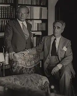 In January 1921, Respighi and Elsa embarked on their first concert tour as joint performers with violinist Mario Corti. It was Elsa's debut as a live performing artist. The tour saw dates across Italy, followed by Prague, Brno, and Vienna.[48] Respighi's employers at the Liceo Musicale were not happy with his extended absence, and sent him a letter suggesting he returned to fulfil his teaching duties for the remainder of the academic year.[49] By 1921, Respighi had begun a lifelong friendship with the writer and journalist Claudio Guastalla, who suggested he compose a new opera and offered to write the libretto. This sparked a period of creativity and Respighi finished Belfagor, his first opera in a decade, without the spells of depression that usually fell upon him after a piece was finished.[50] It premiered in Milan in April 1923. Guastalla produced the libretti for all four subsequent operas from Respighi and influenced the conception, or programmes for, some of his non-operatic compositions.[16]