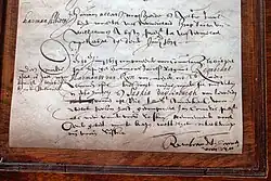 Rembrandt was a frequent visitor to the Oude Kerk and his children were all christened here. It is the only building in Amsterdam that remains in its original state since Rembrandt walked its halls. In the Holy Sepulchre is a small Rembrandt exhibition, a shrine to his wife Saskia van Uylenburgh[3] who was buried here in 1642. Each year on 9 March (8 March in leap years), at 8:39 am, the early morning sun briefly illuminates her tomb. An early spring breakfast event is held annually.