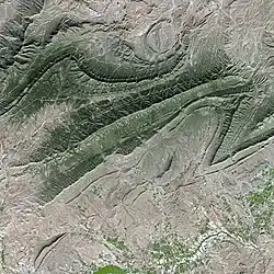 The range is formed by mountains created by folds of the early Tertiary which remained relatively undisturbed after formation but have been heavily eroded. Their altitude is relatively moderate, the highest point of the range, Djebel Lazrag (جبل الأزرق), not even reaching 1,500 m. However, towards the south the look of the highest ridges is quite spectacular, with jagged sandstone or limestone outcrops and almost vertical walls. The part facing the Sahara has a less encumbered terrain with smooth mountaintops separated by water gaps.[2]