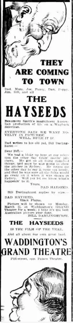 - ^ ""THE HAYSEEDS."". The Register (Adelaide). Vol. LXXXII, no. 21, 915. South Australia. 3 February 1917. p. 7. Retrieved 20 July 2024 – via National Library of Australia.