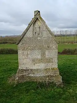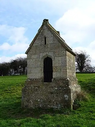The well house was built in the 14th century for the Manor of Hempsted, which was held by Llanthony Secunda.[1][2] The well house is a tall structure built from Limestone blocks with an arched opening at the front. Water issues from the front into a large stone trough.[3] The rectangular water trough was added in the 18th or 19th century, and would have provided water for livestock. On the back of the well is a stone sculpture showing Saint Anne standing between her daughter, the virgin Mary, and an Angel.[4] It has been used as a baptistery,[5] and formerly was considered to have medicinal properties.[6] In the past it has been a place for pilgrimage, with countless pilgrims being recorded as coming to the site to seek cures. Pilgrimage was revived in 1989 for several years but has now ceased. The well is now dry. Ancient earthworks exists just to the east of the field containing the well.[3]
