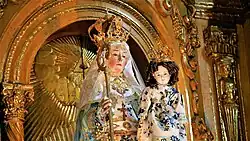 On 7 January 1991, the shrine was elevated of Archdiocesan Marian Sanctuary and under diocesan authority, granted the coronation of the statue. On February 2 of the same year, the statue was solemnly crowned as filial homage to the fervent devotion and rendering of thanks to the Mother of God on behalf of the religious community of the Convent and of the devotees of the city of Quito and of the whole archdiocese.[7]