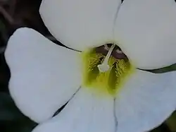 Ourisia caespitosa forms natural hybrids with several other species of Ourisia in New Zealand.[5] Ourisia × prorepens Petrie[18][19] is an interspecific hybrid between O. caespitosa and O. sessilifolia. O. × cockayneana Petrie[20][19] is another named interspecific hybrid between O. caespitosa and O. calycina. Other hybrids that have been collected at least once include O. caespitosa × macrocarpa, O. caespitosa × macrophylla, O. caespitosa × glandulosa, and O. caespitosa × simpsonii.[5]
