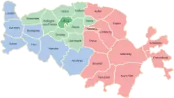 - Malmedy: Aubel, Néau, Kronenbourg, Limbourg, Malmedy, Saint Vith, Schleiden, Spa, Stavelot, Verviers and Vielsalm.