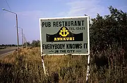 Outdoor advertising has also been criticised because of landscape protection or because it would cause environmental damage or "visual pollution" in the landscape. Loose advertising billboards placed on sidewalks in front of businesses cause harm and danger to the visually impaired. Many municipalities in Finland require a minimum of 1.5 metres' width of free passage space and that billboards can only be used while the businesses are open. Municipalities also give guides and grant permits for placing construction signs, signs about events and other advertising devices.[9] In 2002, the predecessor of the Finnish Transport Infrastructure Agency published a guide for advertising along roads together with the Ministry of Environment and the Finnish Municipal Association.[10]