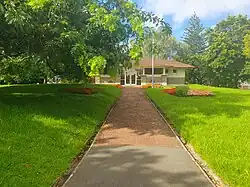 It appears that Thomas Outhwaite and his family were living near the Auckland Domain by 1843. In 1844 he bought land and built a house on the south-western corner of Carlton Gore Road and Park Road opposite the Domain in the present-day Auckland suburb of Grafton.[14] Most of this property was subdivided over the years and sold off although a parcel of land on the south side of Khyber Pass Road was gifted by Isa Outhwaite to the Catholic Church and is now the location of St Peter's College. The remaining portion of the family property included the family house on the corner of Carlton Gore Road and Park Road was gifted to the Newmarket Borough Council as a public amenity, and after the demolition of the house, Outhwaite Park was laid out, retaining as many of the mature specimen trees as possible.[14]