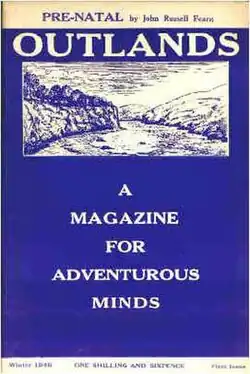 Around the time of the magazine's launch in October 1946, a preliminary announcement described the magazine as "for all who seek wider fields of thought and imagination, and who aren't afraid to face facts that run counter to accepted beliefs." Offering scope for writers with original ideas, the creators distanced themselves from committing to any set formula for the magazine, and promised to feature whatever they wanted to write as long as it was "unique and significant."[8] The creators attempted to solicit interest in advance of publication by circulating this announcement to science fiction and fantasy fans, and inviting anyone interested in receiving more information about the magazine to contact them at "Outlands Publications", 19 Richmond Avenue, Liverpool 21.[9]