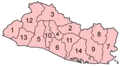 El Salvador is divided into 14 Departments. Their names, abbreviations, (and capitals) are: