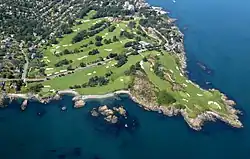 Golf – precision club and ball sport, in which competing players (or golfers) use many types of clubs to hit balls into a series of holes on a golf course using the fewest strokes.
