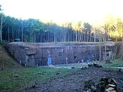 Aumetz did not see significant action until June 1940, when German forces kept up a series of harassing attacks. On 19 June, the Germans set up a 37mm anti-tank gun on a mine spoil mound and opened fire against Block 3, without much effect. Bréhain's artillery replied with counter-battery fire. An advance along the nearby rail line was repelled with machine gun fire from Aumetz. Steady advances by the Germans isolated Aumetz by 23 June. The 22 June 1940 armistice brought an end to fighting.[15] However, the Maginot fortifications to the west of the Moselle did not surrender immediately, maintaining their garrisons through a series of negotiations. Aumetz, along with Mauvais-Bois, Bois-du-Four and Bréhain surrendered on 27 June.[16]