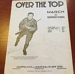 Over the Top: Military March is a World War I era song released in 1917. Geoffrey O'Hara composed the music.[1] The song was published by Chappell & Co., Ltd. of New York, New York. On the cover, there is a picture of Arthur Guy Empey, charging with a rifle. In the background, there are soldiers and barbed wire.[2] It is written for piano.[3]