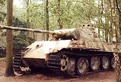 - a Panther tank; this was disabled at the Battle of Overloon; the tank then stood outdoors for more than 50 years, but was since restored and is now displayed indoors