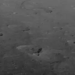 ![]() MESSENGER NAC image of Ovid crater (bottom center) and part of Pushkin crater (top) | |