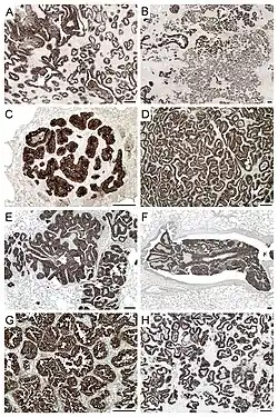 - ^ a b c d Griffiths, D.J.; Martineau, H.M.; Cousens, C. (May 2010). "Pathology and pathogenesis of ovine pulmonary adenocarcinoma". Journal of Comparative Pathology. 142 (4): 260–283. doi:10.1016/j.jcpa.2009.12.013. PMID 20163805. Retrieved 2017-01-25.