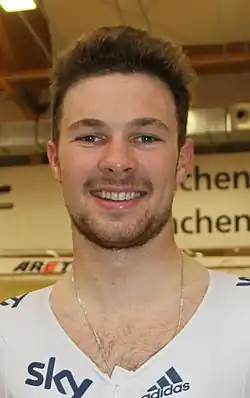 Owain Daniel Doull (born 2 May 1993[6]) is a Welsh road and track cyclist, who currently rides for UCI WorldTeam EF Education–EasyPost. Doull specialises in the team pursuit on the track, and won a gold medal in the discipline at the 2016 Olympics in Rio de Janeiro; as a result, he became the first Welsh-speaking athlete to win Olympic gold.[7]